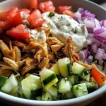 One of the best parts of the Leftover Chicken Gyros Bowls Recipe to Savor in 15 Minutes is its versatility. You can easily customize it to suit your family’s tastes or dietary needs. For instance, you can swap out tzatziki for a dairy-free dressing or introduce grains like quinoa instead of rice. There’s no limit to what you can create with just a little imagination.